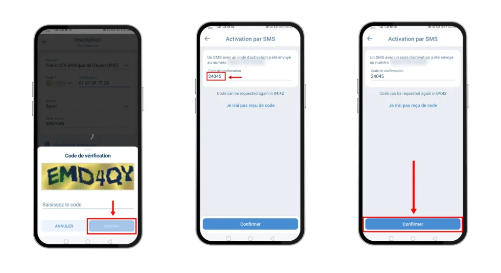 • Vous recevez le code de vérification. Saisissez-le sans faute et tapez « Suivant ».