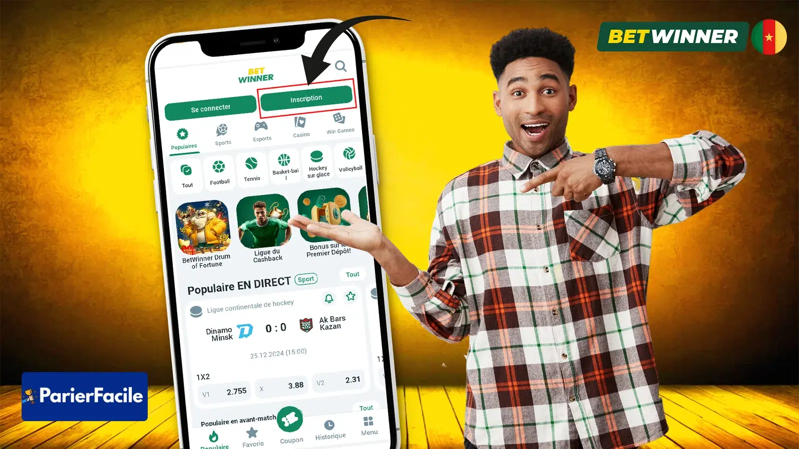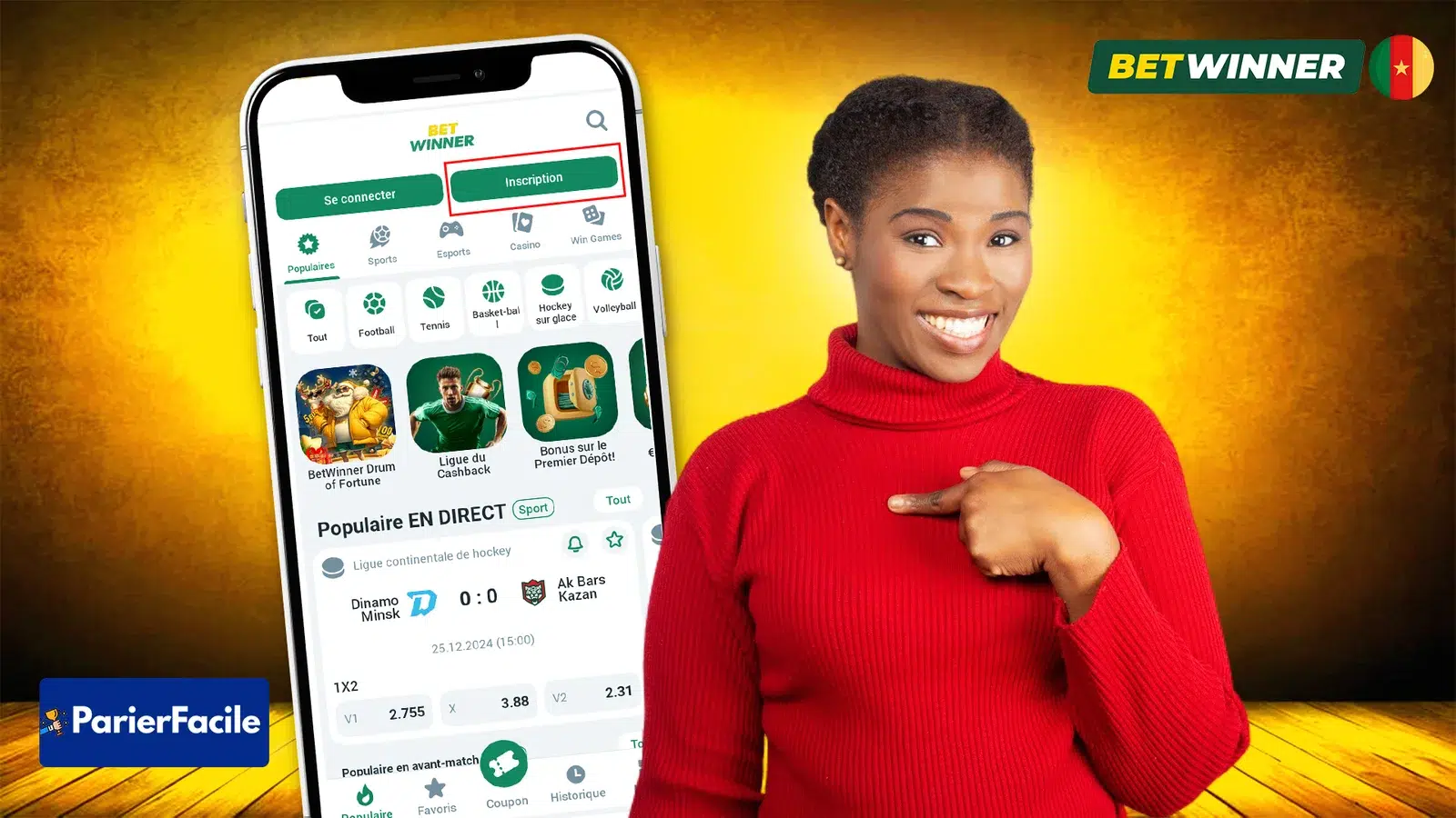 Pour créer un compte sur Betwinner au Cameroun, cliquez sur le bouton “Inscription” sur la page d’accueil de Betwinner APK. Choisissez ensuite une méthode d’inscription, puis suivez la procédure indiquée.