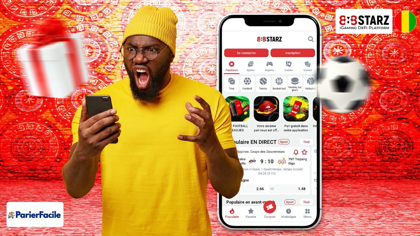 Pour obtenir le bonus 888Starz Guinée, commencez par l’inscription en utilisant le code promo 1TRE. Remplissez le formulaire, acceptez les conditions, et validez votre compte. Finalement, rechargez votre compte. Le bonus qui est de 100 % jusqu’à 65 500 XAF, après votre premier dépôt, sera alors crédité automatiquement.
