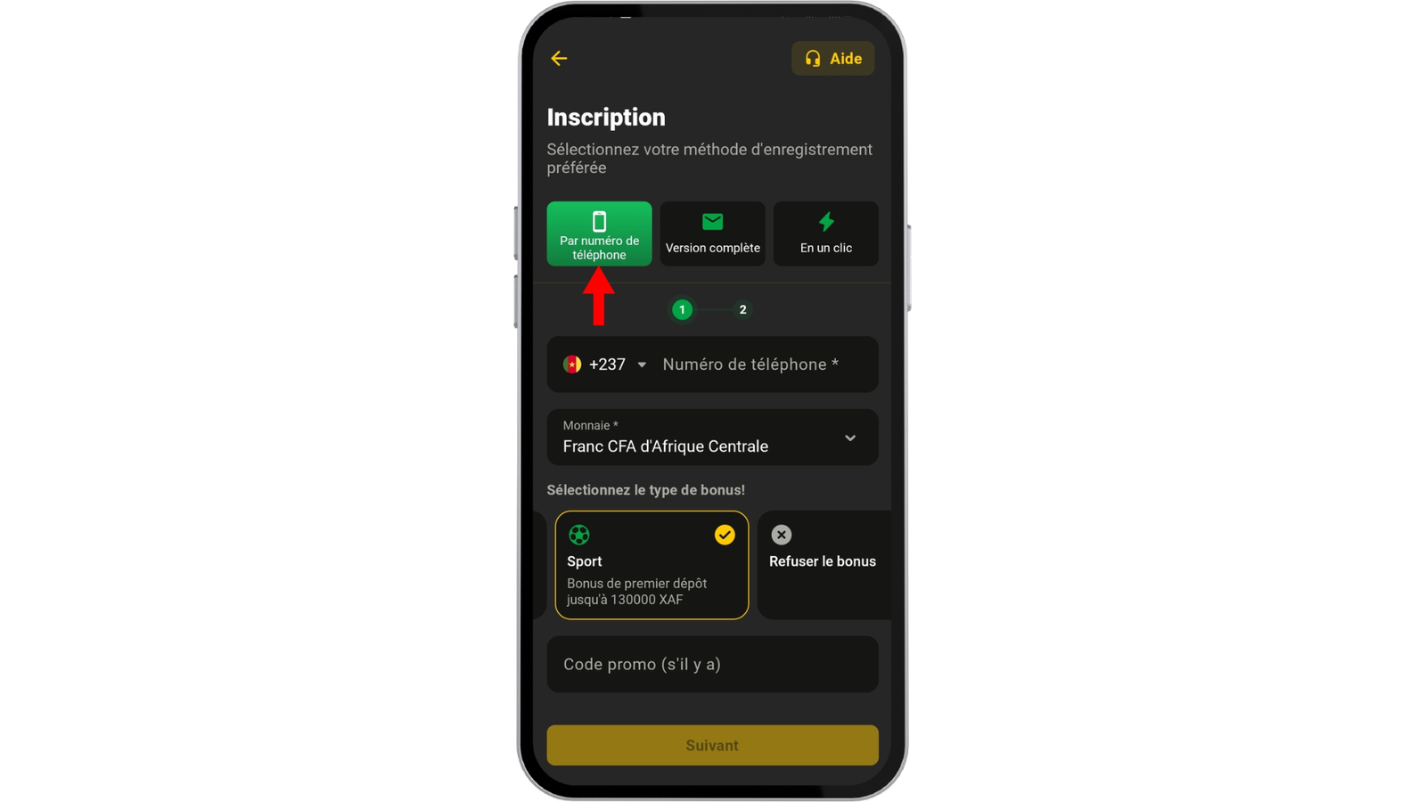 Pour créer votre compte sur AfroPari, vous avez le choix entre trois méthodes d’inscription : l’inscription en un clic, par numéro de téléphone et la version complète. Nos experts conseillent la méthode « Par téléphone », car elle est très sécurisée et rapide : ce qui explique d’ailleurs pourquoi elle est la plus utilisée.