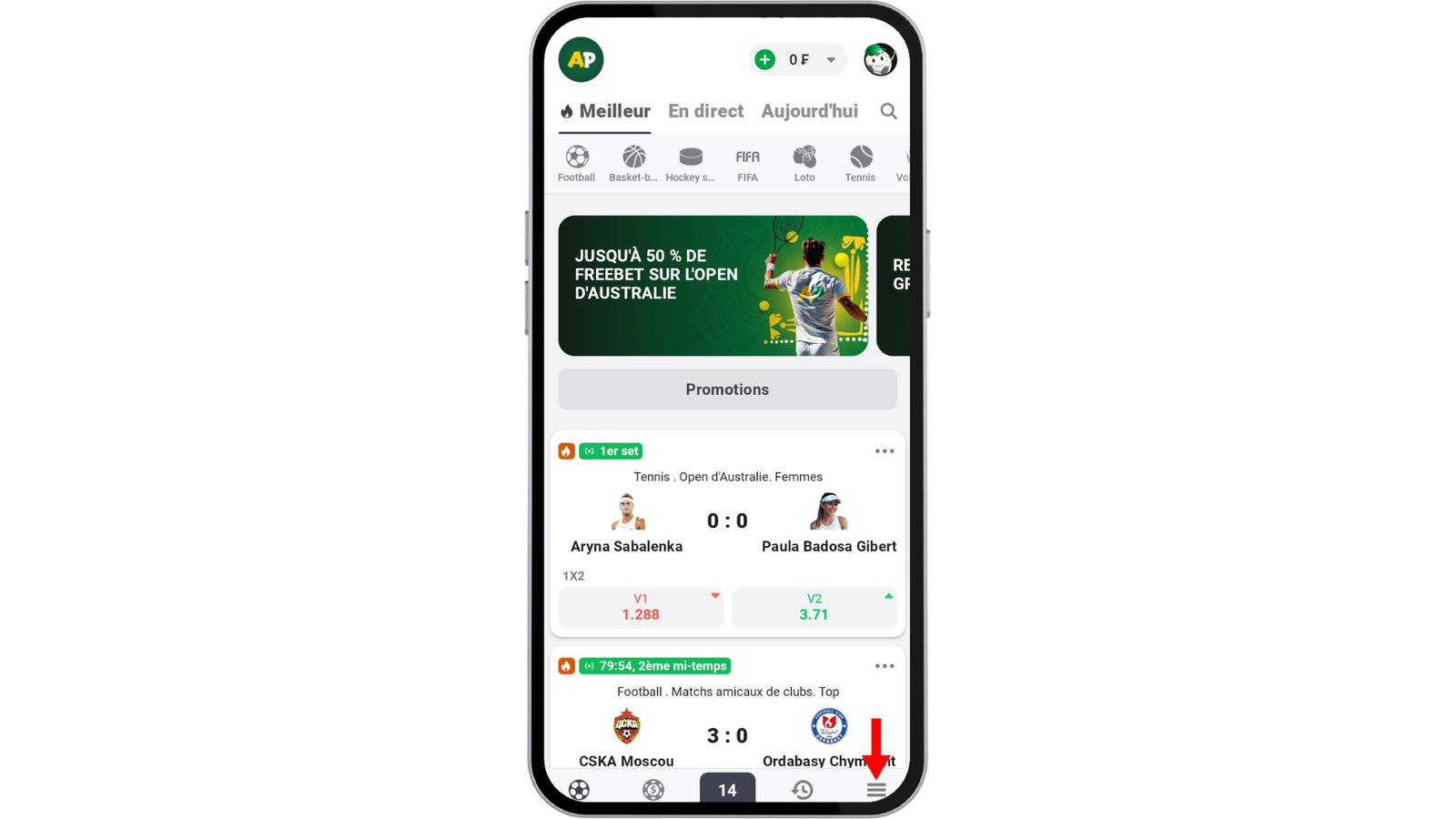 Pour obtenir le Bonus Afropari Côte d’Ivoire, inscrivez-vous avec le code promo WINPARIS. Mettez ensuite votre profil à jour, puis effectuez un dépôt d’au moins 300 francs avec un moyen de paiement autre que les cryptomonnaies.