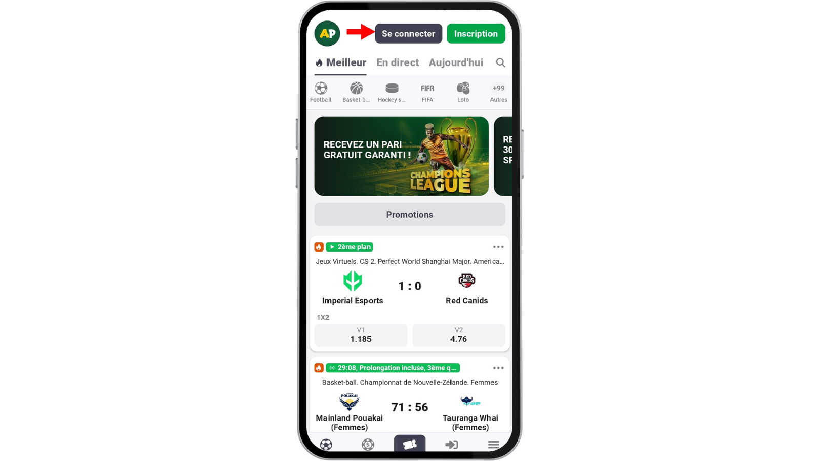 Une fois l’application du bookmaker que vous avez préalablement téléchargée sur est ouverte, cliquez sur l’onglet « Se connecter ».