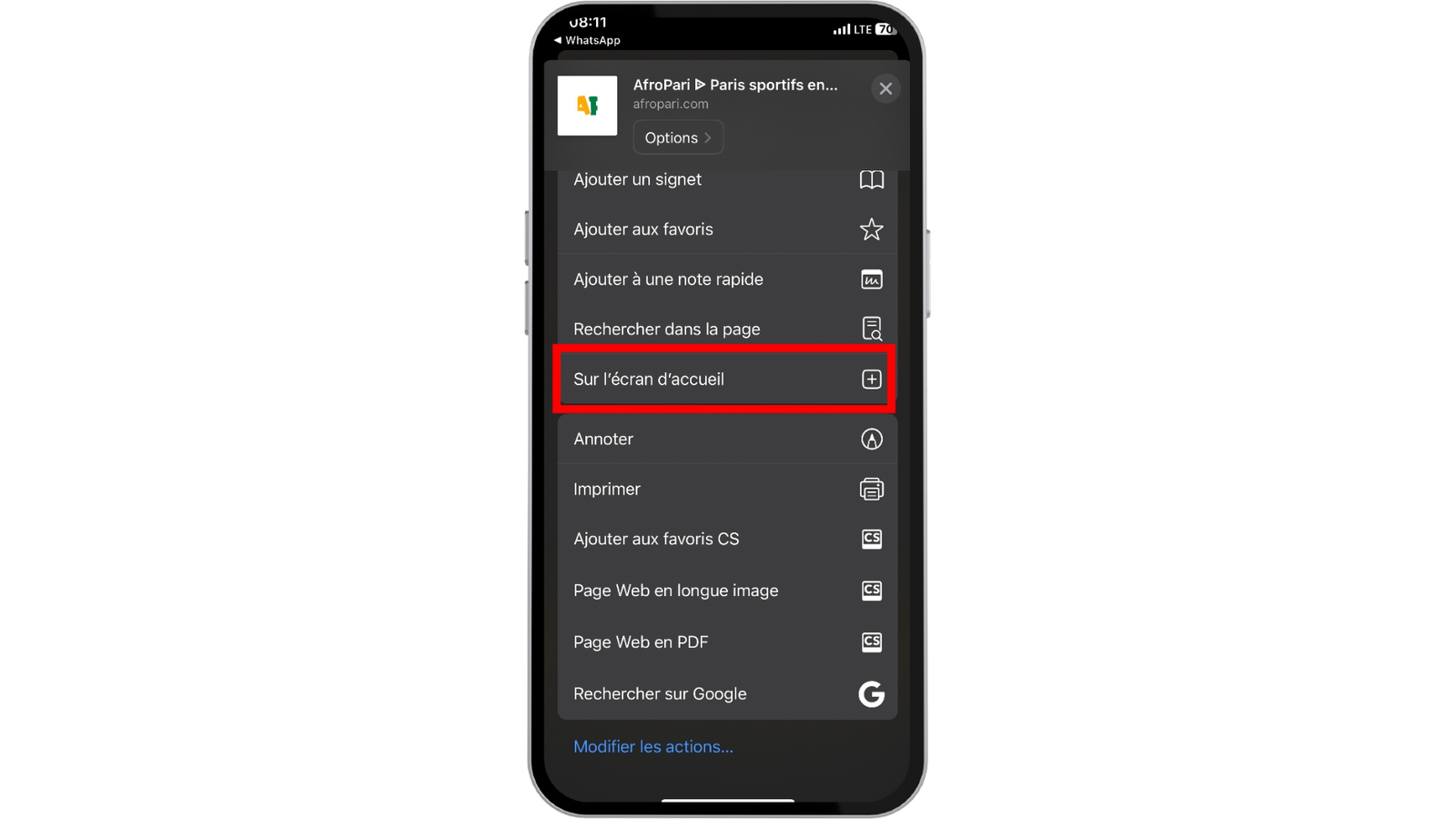 Choisissez l’option « Ajouter à l’écran d’accueil »