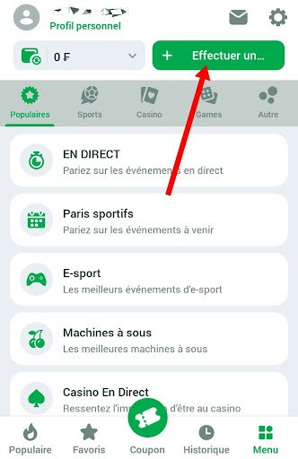 Une fois sur la page principale de votre compte Linebet, naviguez vers le menu et cliquez sur le bouton « Effectuer un dépôt ».