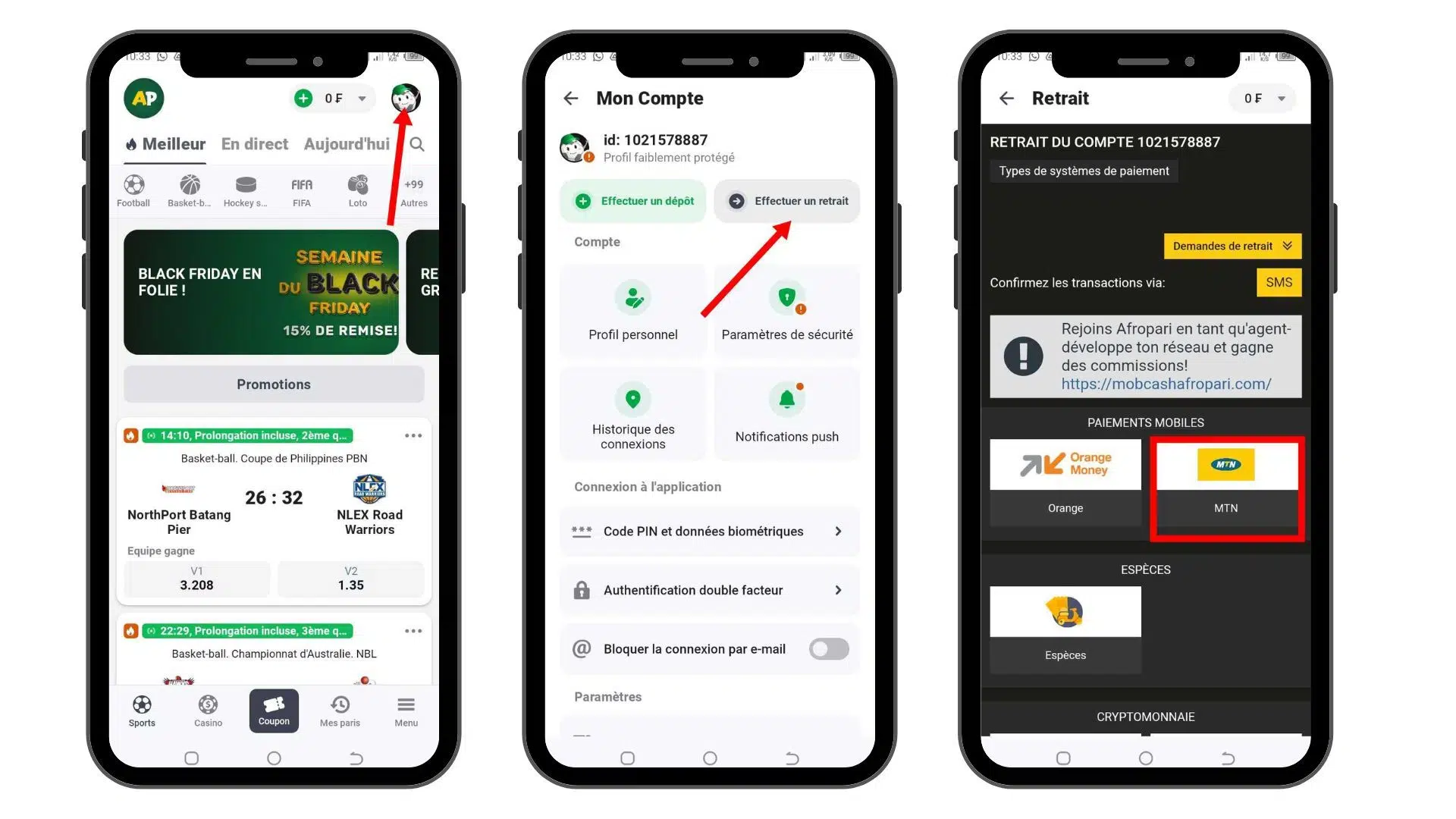 En suivant ces étapes, vous pourrez retirer vos fonds de manière simple et sécurisée sur AfroPari Côte d’Ivoire.