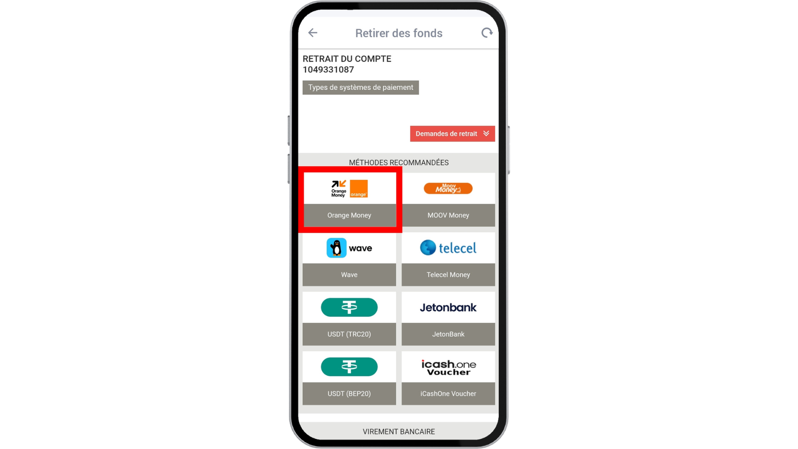 Actuellement, pour les retraits, MegaPari met à disposition de ses joueurs burkinabés une trentaine de moyens de paiement. Ce sont, entre autres, des portefeuilles électroniques, des virements bancaires et d’autres méthodes. Choisissez l’un d’eux en cliquant sur son nom.