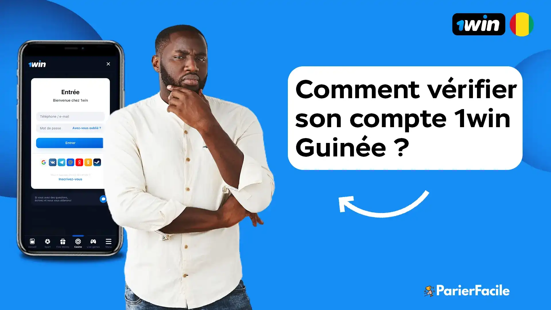 Après inscription sur 1win Guinée, la vérification de votre compte 1win Guinée commence par la vérification de votre âge. Vous devez avoir au minimum 18 ans et assurez-vous d’avoir un seul compte 1win pour ne pas être suspecté de fraudes.