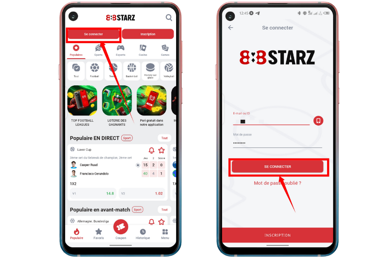 Allez sur la page d’accueil de 888Starz Sénégal, cliquez sur “Se connecter”, entrez votre email et votre mot de passe, puis accédez à votre compte.
