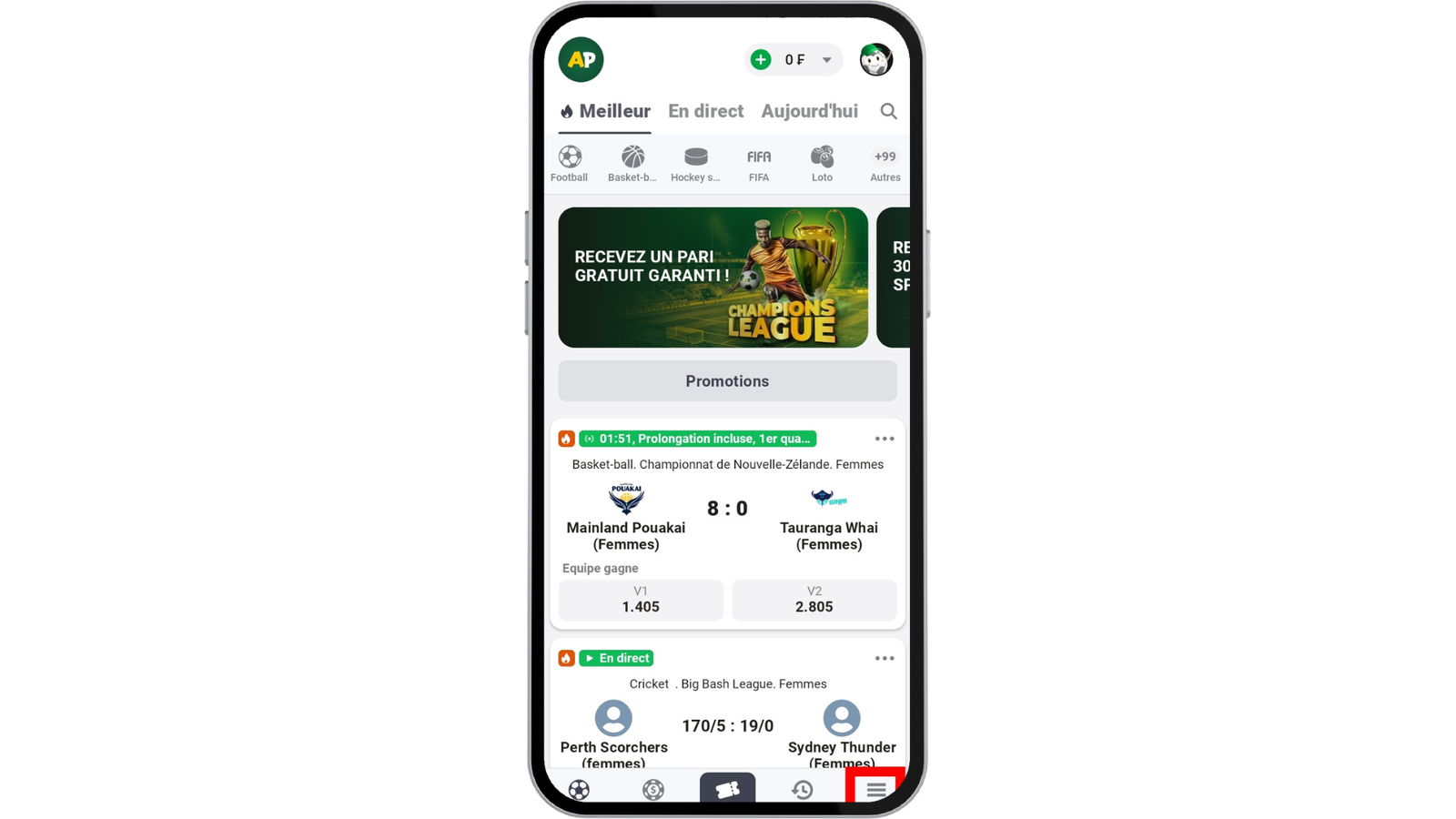 En Côte d’Ivoire, le code promo à utiliser est 1TRE. Il vous permet de profiter de plusieurs promotions, telles que le bonus de bienvenue, le pari gratuit, ainsi que le cashback au basketball.