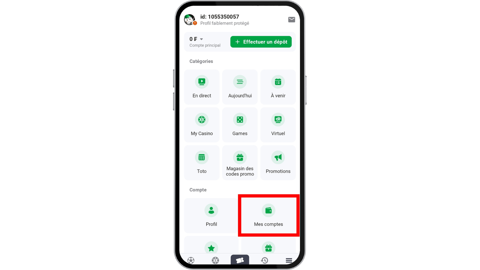 - Rendez-vous dans la section « Mes comptes » parmi les options du menu.