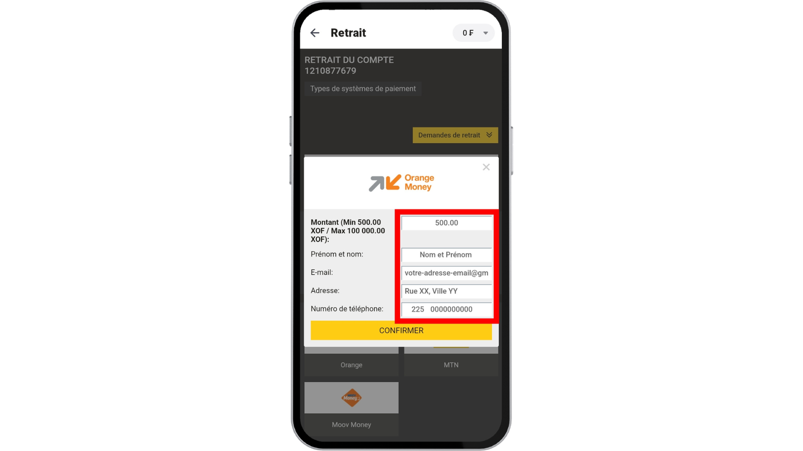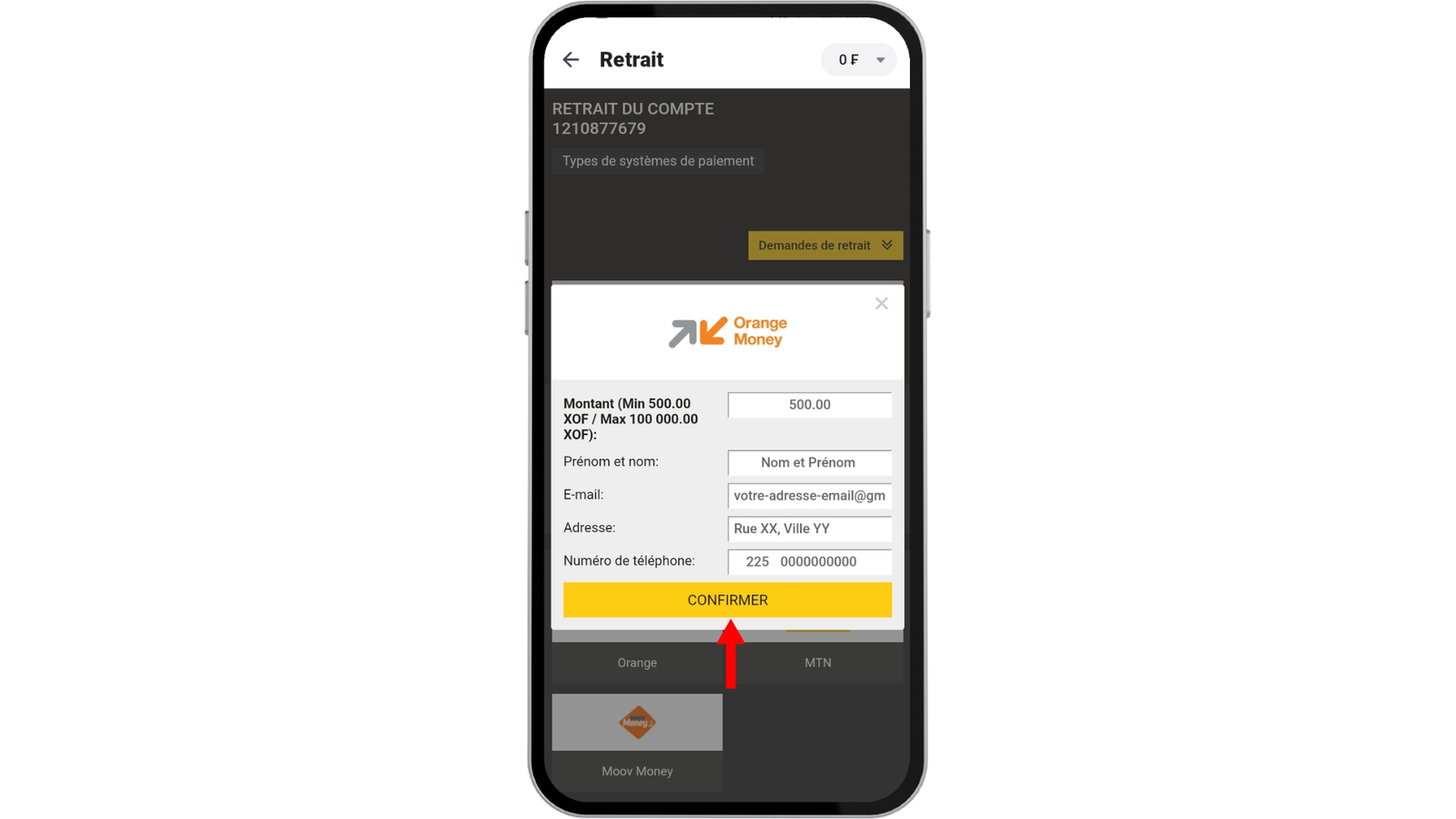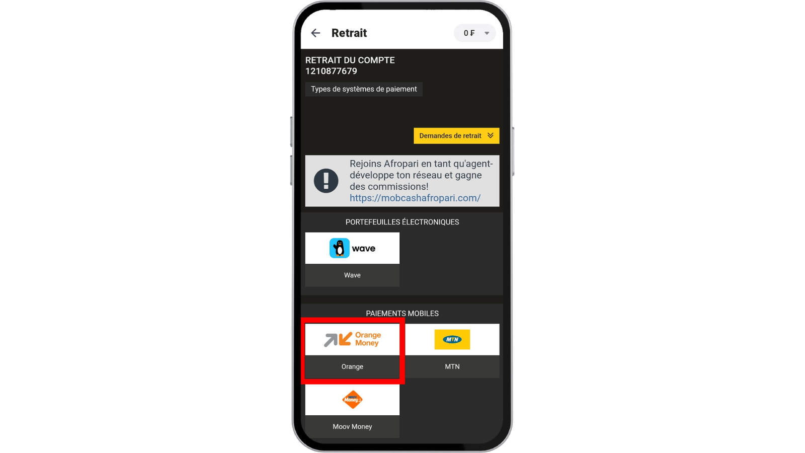 Pour retirer vos gains d’AfroPari Côte d’Ivoire :