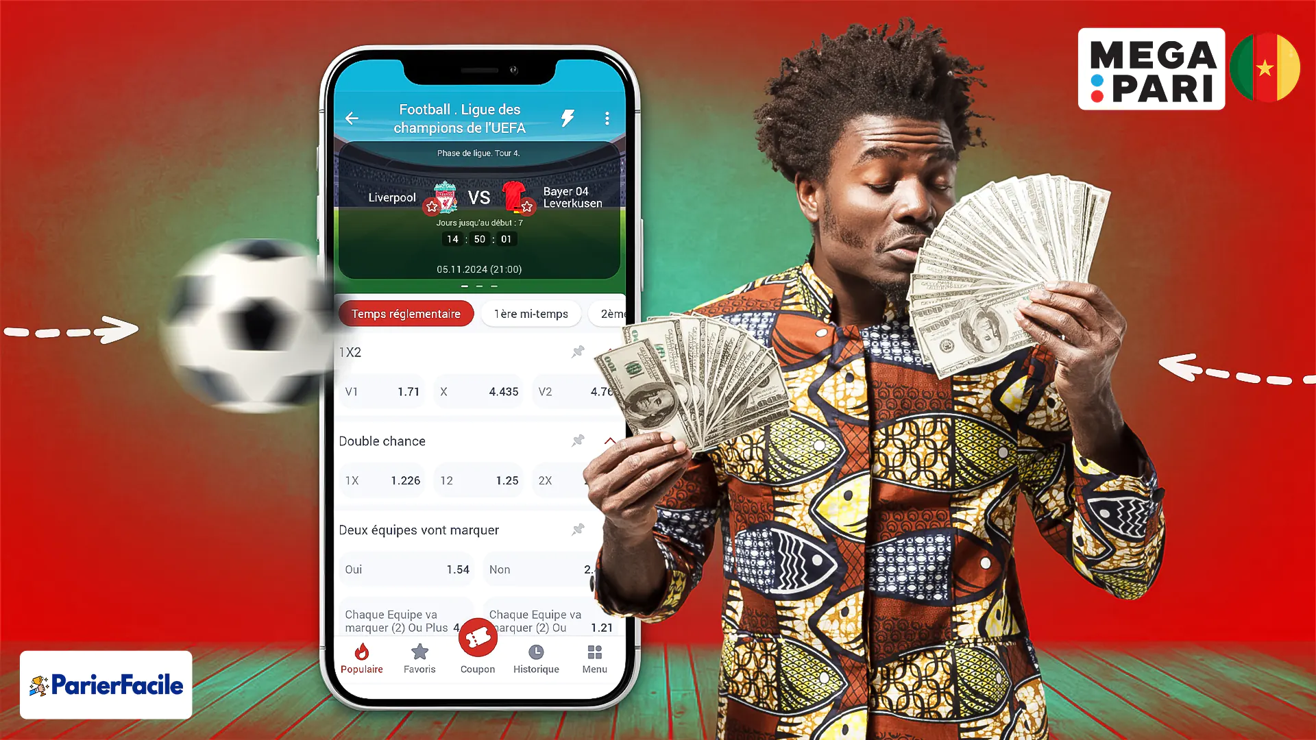 Parier sur Megapari Cameroun est un processus simple et rapide : créez votre compte, effectuez un dépôt sécurisé, puis explorez les nombreuses options de paris sportifs et de jeux disponibles pour maximiser vos gains.
