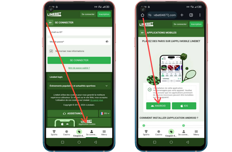 Pour télécharger l’application Linebet Mali sur votre téléphone, rendez-vous sur le site officiel du bookmaker. Cliquez sur “application mobile” en bas de la page. Vous serez redirigé vers une nouvelle page où vous devez choisir une option (Android ou iOS) pour lancer le téléchargement.