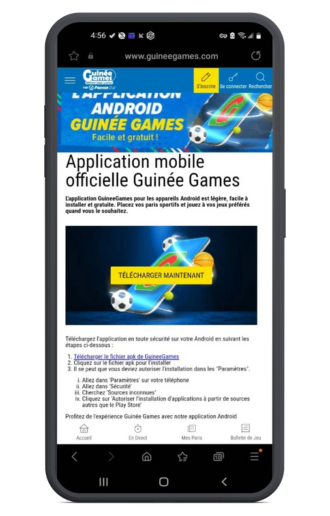 1. Rendez-vous sur le site officiel de Guinée Games sur votre téléphone en cliquant sur le bouton ci dessous